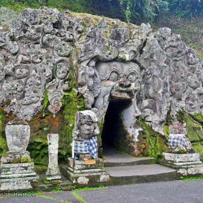 - 고아 가자 입구에는 거대한 입을 벌린 신성한 동물 ‘바롱’ 형상이 조각되어 있어요.